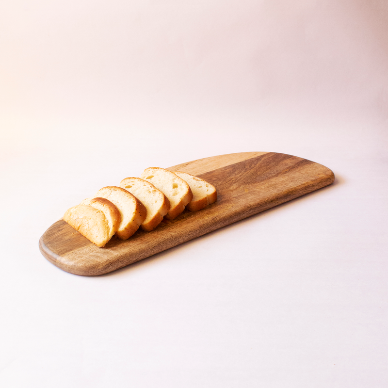 This elegant Wooden Breadboard is a contemporary and edgy bread and pastry chopping and serving board. With this simple and sleek board, you may slice or serve your bread or cheese. Made of mango wood, its lightweight and effortless to handle. This exquisite wooden oblong bread board will complement the look of your kitchen while also providing all of the usefulness of a serving tray and cutting board in one.